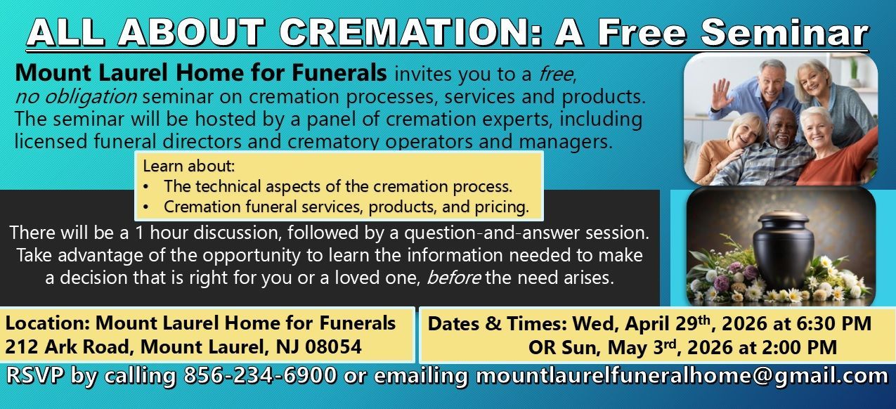 Thank you for taking the time to visit our website. The caring and experienced professionals at the Mount Laurel Home for Funerals have been serving Mount Laurel and the surrounding communities for over 30 years. We provide compassionate care and outstanding service, and we have based our business around the principle of treating each family as if they were our own.